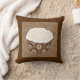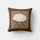 Cupcake, gevroren en gehakt met versnipperde kokosnoten, in een decoratief, chocoladebruin en wit behangselpapier, verpakt als cupcake, op een bruine en roomkleurige Japanse achtergrond, werpt de kussen op een kussen
