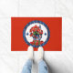 Een rode witte en blauwe koloniale gieter kan deurmat voor dat landelijke decor