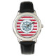 Nautisch ontwerp met kompasdecoratie op rode en witte gestreepte achtergrond