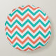 Koraal, Blauwgroen, wit groot Chevron ZigZag Patte Rond Kussen