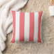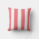 Koraalroze en witte brede strepen op een ontwerper werpen kussen. Met gestreept kussens worden grote accentuerdecoraties gemaakt, zowel tegen gekleurde als tegen gekleurde sofa's, stoelen en design in de ruimte. Ideaal voor woonboten, woonkamers, slaapkamers, huisjes, strandhuizen en kinderkamers.