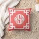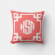 Koraal en wit Griekse Key Circle Monogram Kussen