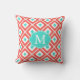 Koraal, Turquoise, White Ikat Diamond Pattern Kussen