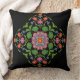 Kort gekleurd Floral Rangoli Pattern op Black Kussen