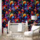 Verwen uw ruimte met gedurfde, maximalistische energie met behulp van dit dynamische behang, met een verbluffende reeks regenboogwervelingen en bubbels. Het levendige ontwerp barst van de vurige sinaasappels, de elektrische blues en de levendige paarse kleuren, allemaal tegen een opvallende zwarte achtergrond. Perfect voor het creëren van een statement in elke kamer, dit opvallende behang brengt een gevoel van beweging en opwinding, het transformeren van uw interieur in een levendig en artistiek meesterwerk. generatieve inhoud