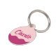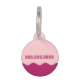 De markering van identiteitskaart van het pakket die de naam van uw huisdier in wit op een lichtroze achtergrond met het telefoonaantal op de rug kenmerkt. De doopvonten en de kleuren zijn klantgericht in het ontwerphulpmiddel.