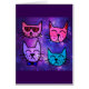 4 verschillende illustraties van een paar coole kattengezichten in de ruimte. Een kat draagt een paar coole tinten terwijl de anderen hun ogen dicht hebben en er ontspannen uitzien, een draagt een boeg stropdas. Deze katten worden geplaatst op een ruimteachtergrond met heldere kleuren en veel twinkelende sterren op de achtergrond.