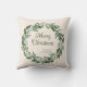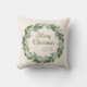 Een eenvoudig en stijlvol Wreath Script Christmas-Sierkussen met een prachtig kransontwerp en mooie kalligrafie met Merry Christmas en veel ruimte voor u om uw familienaam en jaar toe te voegen. Een zachte crème achtergrond geeft dat gevoel. Creëer blijvende momenten speciaal voor jou van Up On the Mountain!