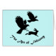 Het silhouet van twee Harris Hawks die op een jakobkonijn jagen met de woorden The Art of Falconry hieronder.