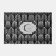Doormat in een Kunstdeklappatroon met een gestileerde veer - schaduwen van zilvergrijs/grijs op een zwarte achtergrond met aanpasbaar monogram
