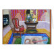 Heldere en kleurrijke ruimte met interessante rode stoel en hand van artistieke tekening, met speelse spiegelreflecties heen en weer.