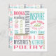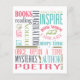 Fun typografische design voor iedereen die van de boeken en bibliotheken van de wereld houdt! Woorden die zijn opgenomen in deze metro-kunststijl: boeken, bibliotheek, poëzie, inspireer, eens per keer, verbeelding, auteurs...