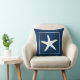 Nautical themed gooit kussen met witte zeebodem op marineblauwe achtergrond Zie alle coördinerende kussens design op Sandy Feet Studios.