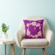 kussens voor de slaapkamer van een meisje hebben een ontwerp van witte en roze bloemen op een paarse achtergrond.