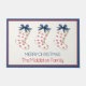 Deze schattige kust geïnspireerde vakantie deurmat beschikt over klassieke kerstkousen met rode krabben op wit en een donkerblauwe boog op de top. Personaliseer met uw keuze van naam en speciale tekst.