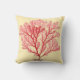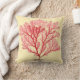 Kusthuisje, kussen met levende kustaccenten kenmerkt roze koraal afbeelding uit de natuurlijke geschiedenis. Het decoratieve strand gooit kussens die het perfecte accent zijn voor elke bank of bed in elke kamer.