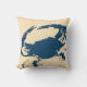 Kustgele sepia visgraat en blauwe krab silhouetten gooien kussen.