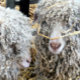 Een fotografisch ontwerp van twee zeer schattige angoragegeiten met een rietversiering.