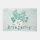 Decoreer voor de kerstvakantie met deze kust, strand of tropische deurmat met gouden en turquoise glitter zeester en koraal, zanddollars en een gouden glitter ZEEEN & GREETINGS typografie ontwerp. ASSISTENTIE: Voor hulp bij het aanpassen of personaliseren van het ontwerp, het veranderen van de kleur, het vergroten of verkleinen van het formaat, het overbrengen van het ontwerp naar een ander product of als u het coördineren van items wilt, neem dan contact op met de ontwerper VOORDAT U BESTELT via het Zazzle Chat MESSAGE tabblad hieronder of e-mail makeitaboutyoustore@gmail.com.