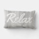 De achtergrond van de witte houtdrukachtergrond van de kust en de witte seizoenshellen werpen kussen met het woord "Relax"in dik wit manuscript.