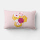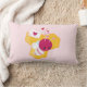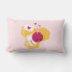 Een lumbaal kussen met een zoet afbeelding van een roze en witte gestreepte hommel. Een stuk gele honingraat erachter. Een brief verzegeld met een hart en een groep zwevende harten maken ook deel uit van het ontwerp.