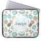 Laptophoes met een schattige tekenstijl voor een fruitpatroonlijn. Lichtgroene en gele kleuren. Een leuk summiere design. Een witte cirkel die over bovenkant met jouw naam en monogram initiaal binnenin gelaagd wordt.