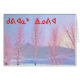 Un tableau numérique de bouleaux enneigés teinté de rose par le soleil couchant. Texte en inuktitut "Kuvianak Innovia" (comprenant le mot anglais "Kuvianak") dans "Merry Christmas Christmas", l'alphabet syllabique adopté au Nunavut, apparaît également en rouge. Les Inuit sont communément appelés Eskimo, mais ce terme est maintenant défavorable car on le considère comme péjoratif. Ici, au nord, il est courant de voir des arbres enneigés teintés de rose ou d'orange par le soleil accrochés à l'horizon.