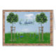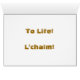 L'expression hébreue de félicitations, "chaim de L", est montrée en caractères hébreux aussi bien que dans la translittération entre deux jeunes arbres symboliques