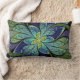 Faux-gekleurde glazen bladeren van groen en turkooistisch lijst een centrale bloem in tinten blauw en paars. De gelijke vierkante gootkussen zijn beschikbaar.