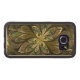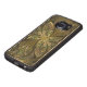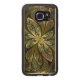 Copyright © 2014, Susan Wallace. Abstracte gekleurde glazen bladeren in tinten van groen en geel lijst vormen een centrale goudbloem in dit ingewikkelde ontwerp.