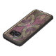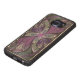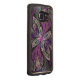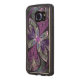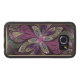 Copyright © 2014, Susan Wallace. Abstract faux-gekleurd glasontwerp van bladeren in schoppen van helder paars, zilver, periwinkle en violet die een centrale bloem van levendige paars vormen.