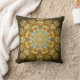 Coussin avec l'oeuvre numérique d'Annie Spikes. Une fleur lumineuse comme le mandala brille sur un arrière - plan brun foncé. Parfait pour ceux qui veulent égayer un espace !