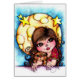 Grande fille d'oeil et son ami de chat de minou regardant fixement la lune