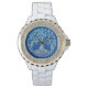 Montre en pierre blanche en émail avec l'image d'un aqua et gris "Arbre de Vie" sur le bleu royal. Le symbole Arbre de Vie représente notre développement personnel, notre unicité et notre beauté individuelle. Tout comme les branches d'un arbre se renforcent et poussent vers le ciel, nous aussi nous renforçons, nous cherchons à acquérir une plus grande connaissance, une plus grande sagesse et de nouvelles expériences au fur et à mesure que nous traversons la vie. Consultez la collection This & That Watch dans la section ACCESSORIES.