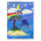 Ce petit dragon de bébé, courbé à la base de l'arbre de noix de coco, est protégé par des dauphins et une lune bénigne sous l'influence magique de l'arc-en-ciel vif. Écrivez votre propre message personnel à l'intérieur de cette carte originale d'art pour une salutation spéciale pour un ami ou celui aimé. Fait un grand cadeau pour n'importe qui sur votre liste ! Grand pour le de nouveau-school ! Le dos indique : "Cette carte de voeux unique créée avec l'art original par Debbie Palmer du monde fantastique de Debbie !"