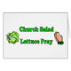 La salade d'église, laitue prient. C'est un amusement chrétien disant que montre également une tête de laitue et des paires de mains de prière. Le lettrage vert avec le contour noir font vraiment cette conception se tenir. La conception est propriété de coeur diligent.