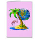 Flamant rose avec le palmier sur la plage avec la terre accrochant en ciel. Vous pouvez choisir votre propre clik de couleur d'arrière - plan juste sur la personnaliser