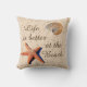 Sable et coquillages La vie est tellement meilleure à la coussin en coton de plage.