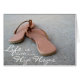 Carte de voeux avec photo de sandales tannées en cuir tan. La vie est meilleure dans les tongs ! Copyright ©Magnum Creative Group. Tous droits réservés.