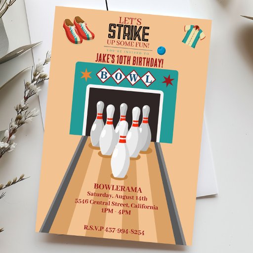 Maak je klaar om de goede tijden te laten rollen op je aanstaande verjaardagsfeestje met deze retro Bowling Verjaardagsuitnodigingen! Stap terug in de tijd naar het tijdperk van klassieke bowlingbanen en maak wat plezier met al je vrienden en familie. Het is zeker een feest om te onthouden!