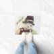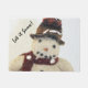 Foto van een vriendelijke sneeuwman op een welkome mat.