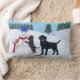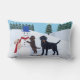 Labrador Kerstmis met Snowman Lumbar Pillow voor Labrador Fans. Drie Labrador-honden spelen met hun sneeuwpop in het witte sneeuwveld. Whimsical Labrador Retriever schilderij geschilderd door Naomi Ochiai uit Japan. Gele labrador en chocolade Labrador en zwarte labrador zijn allemaal in het afbeelding geschilderd.