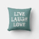 Lachende liefde | Blauwgroen werpkussen met hart. Inspiratie quote voor decoratie thuis. De samengeperste tekst van de de groeve van de blik met douane achtergrondkleur. Het idee van een kussen van een kussen voor vrouwen.