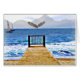 représentation artistique d'un océan avec des montagnes et des voiliers avec un aigle volant à proximité.Un chemin où l'on peut se tenir debout, regarder, rêver et laisser aller ses soucis.