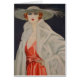 Marcello Dudovich était peintre, illustrateur et concepteur d'affiches italiens au début des années 1900 et était considéré comme l'un des premiers à créer des affiches italiennes. Dans ses premières années, il a travaillé à Milan et à Bologne et a construit une carrière d'illustrateur renommée. Dudivich est célébré comme l'un des plus grands artistes posteurs d'Italie et a été influencé par de nombreux artistes contemporains, mais en fin de compte sa réputation vient de son propre style distinctif et richement coloré. Ce magnifique portrait est de l'actrice Elena Maskowska portant une robe orange vif avec un luxueux manteau de fourrure blanche drapé sur ses épaules un casquette gris à large bord assorti avec des plumes perchées sur ses boucles orange.