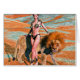 3D digitale weergave van een mooie jonge vrouw en een leeuw op een woestijnlandschap achtergrond
