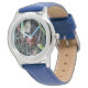 Een horloge met een foto van een dame bug.