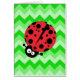 Cute ladybug cartoon op een driekleurig groen zigzagpatroon.