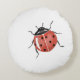 Wit rond kussen met rode lieveheersbeestjes in waterverf.