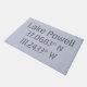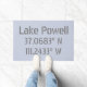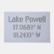 Coördinaten van de GPS-kaart met lengte en breedtegraad voor het populaire recreatiegebied buitenshuis van het Powell-meer dat Utah en Arizona grenst. Moderne, stedelijke grijze doopvont op lichtblauwe grijze achtergrond.